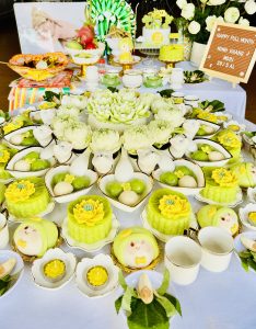 ベトナムの民間信仰では、赤ちゃんは「12人の女神(12 Bà Mụ)」と「守護神 Đức Ông」によって守られているとされており、無事に生まれて1ヵ月を迎えられたことは神仏や祖先の加護のおかげだと考えられています。そのためお祝いでは、供え物を準備して神様に感謝を捧げます。